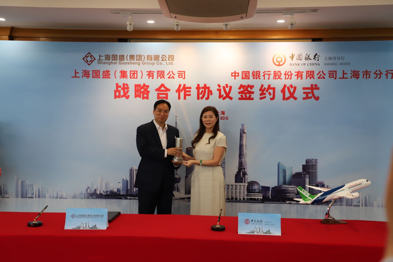 2018年5月30日,国盛集团与中国银行上海分行(以下简称中行上海分行)举行战略合作协议签约仪式。集团党委书记、董事长寿伟光与中行上海分行行长赵蓉分别致辞,集团党委委员、副总裁哈尔曼与中行上海分行副行长周和华代表双方签署战略合作协议。