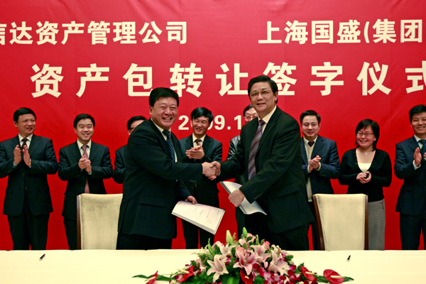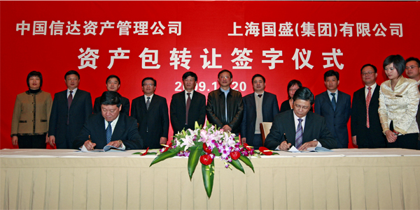 2009年11月20日,国盛集团与中国信达在上海兴国宾馆签署了22亿债权包转让协议。市国资委副主任吕勇明、国盛集团党委书记、董事长施德容、信达总公司党委副书记、常务副总裁侯建杭等领导出席了签约仪式。